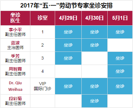 注:部分医生出诊时间偶有变动,具体请以院内实际排班为准。