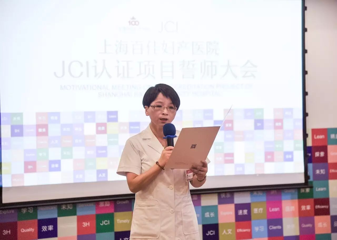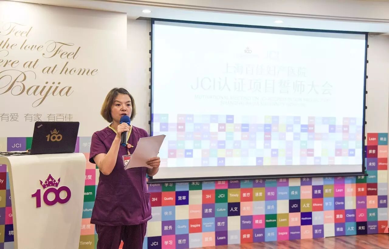 7月4日下午,上海百佳妇产医院JCI章节负责人任命仪式及誓师大会在产后康复楼5F隆重举行。这是百佳妇产继JCI导入仪式后,为将JCI工作落实到各部门,贯彻和培养全院医护人员JCI认证理念,而特别举办的动员大会。上海百佳妇产医院负责人蔡忠华、执行长苏俊飞、业务副院长姜旭珍、JCI项目负责人李小云,以及上百位医务人员出席了本次会议。